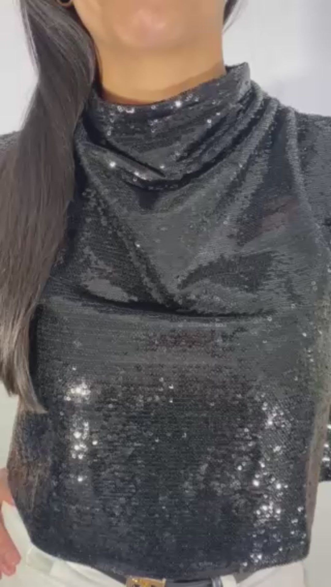 Ésta belleza de prenda es diseñada para la mujer que reconoce su valor y camina con propósito. Es un recordatorio de que, como Eva, cada mujer es una creadora de orden y belleza, capaz de vestir su luz con la prudencia de un diseño inteligente. Su tejido con lentejuelas (brillo) captura la luz de forma sutil, recordándonos que, aunque vivamos en un mundo caído, llevamos dentro la promesa de la redención. Refleja la capacidad de encontrar luz incluso en la oscuridad de la noche. El cuello tortuga representa esa modestia virtuosa, un escudo de elegancia que protege la identidad.